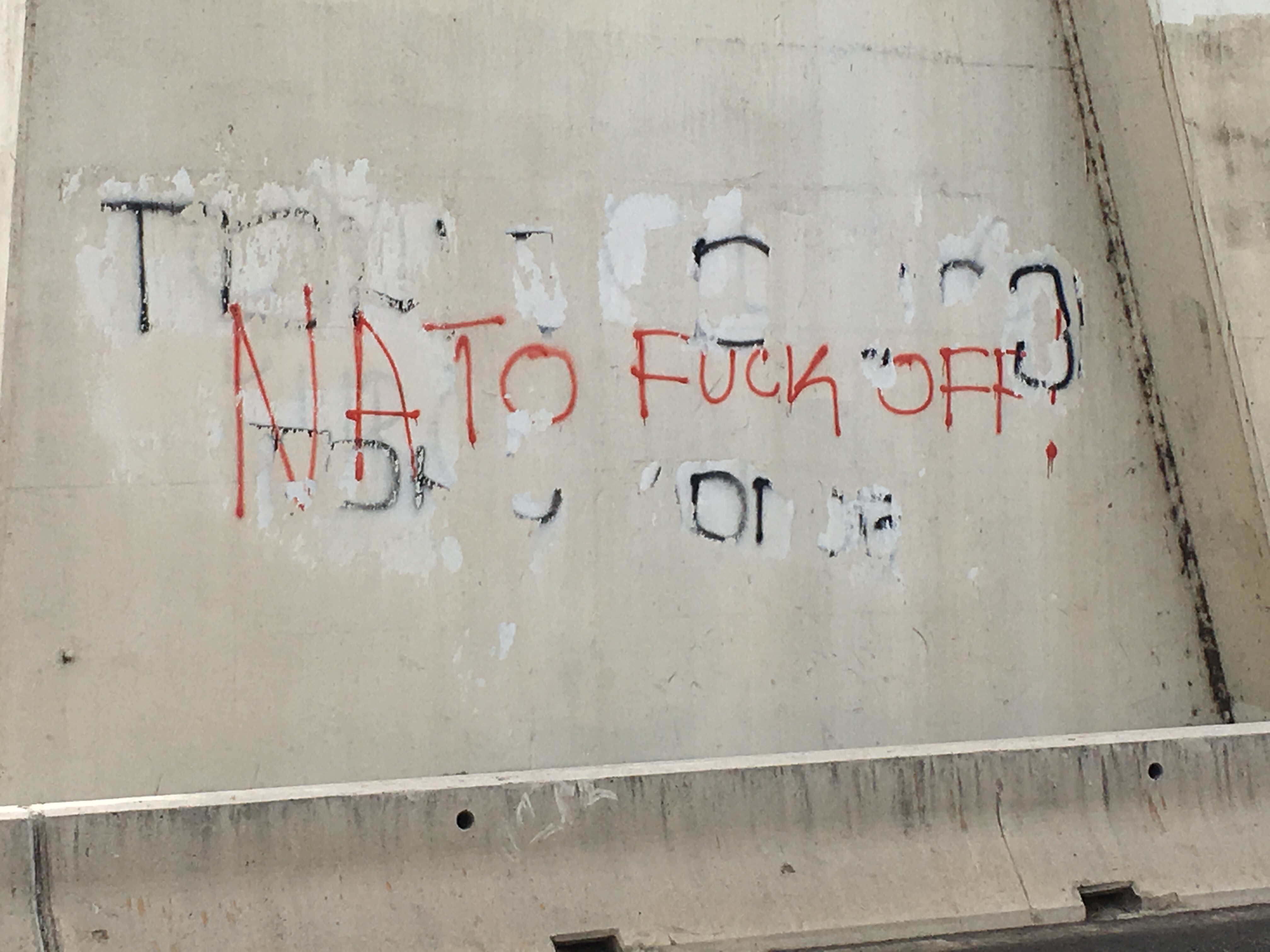 We pass buildings that are as diverse as the people here. We see the signs of a country that has seen a fair bit. From bullet holes riddling walls in a church near Podgorica to some graphic graffiti professing colourful sentiments – these are just part of the story.