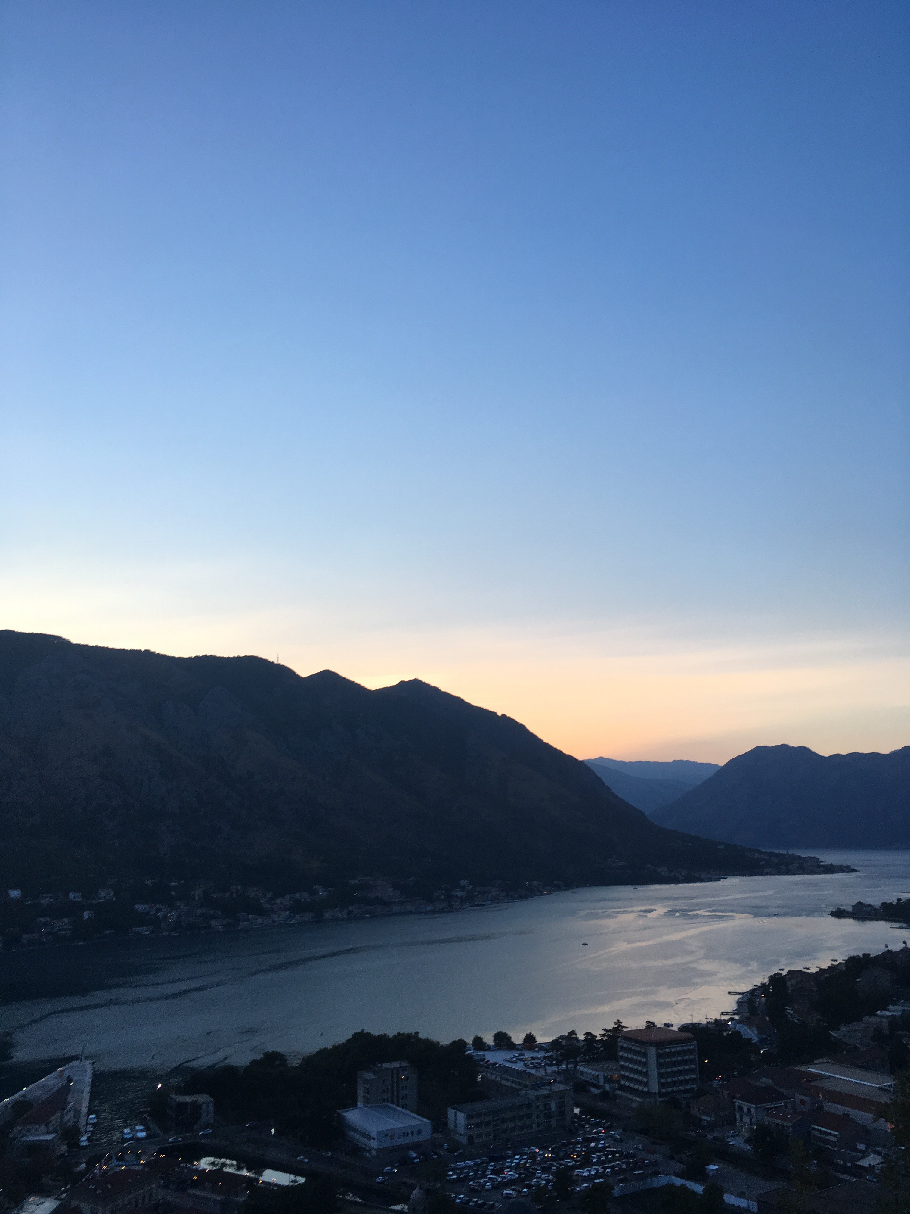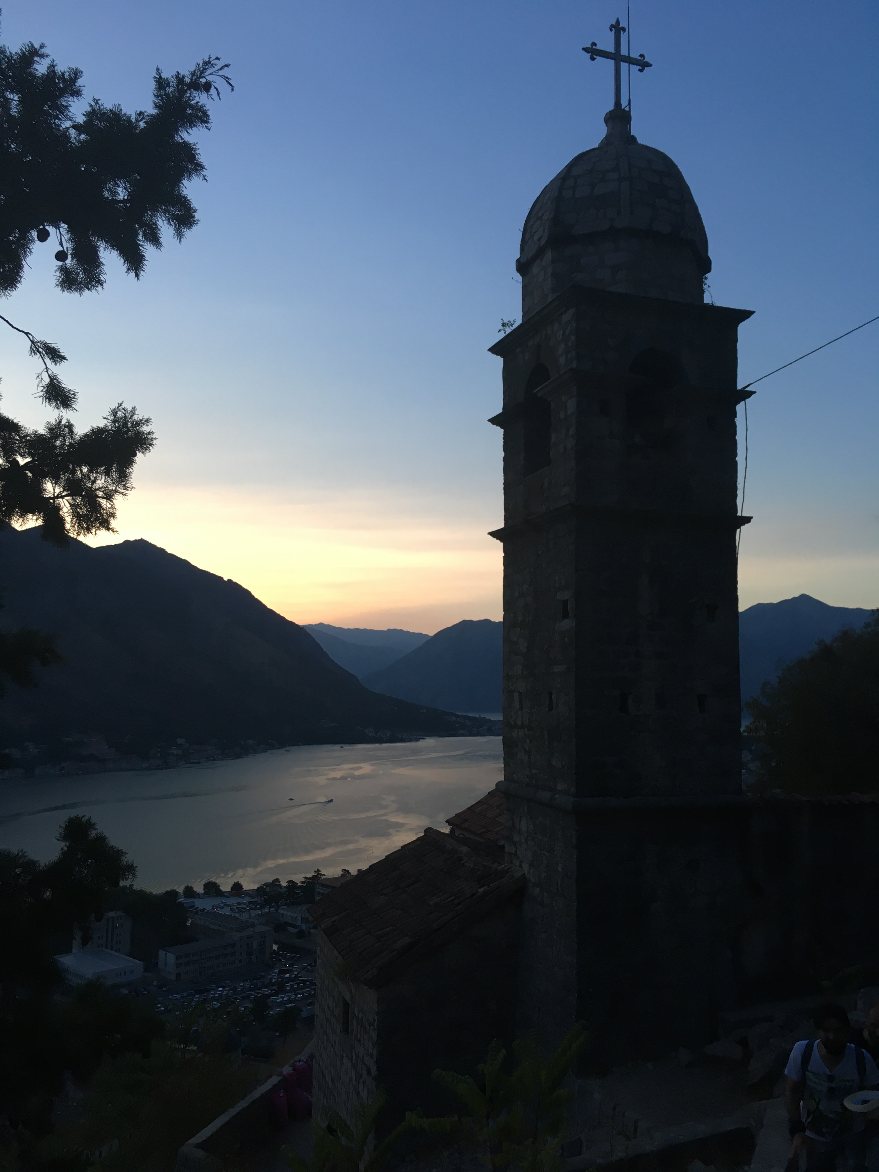 The promise? Best views in Kotor. The price? Sweat! We pass a guard-donkey braying as we breeze past, the Bull and his Cow right on a switchback forcing us to clamber loose rocks 800m above the nearest landing, to the mountain goats laughing at us when we ran out of water before the top.