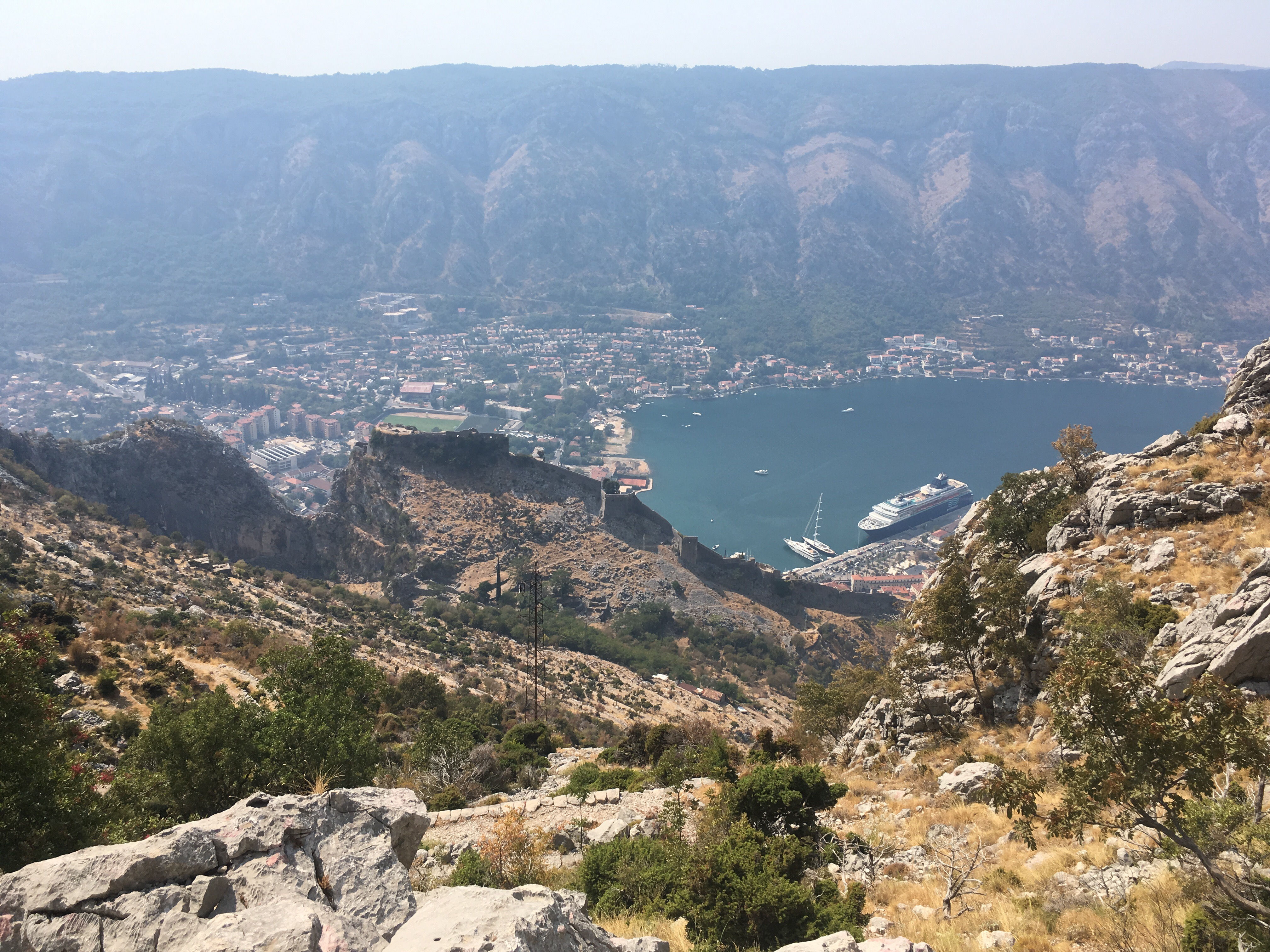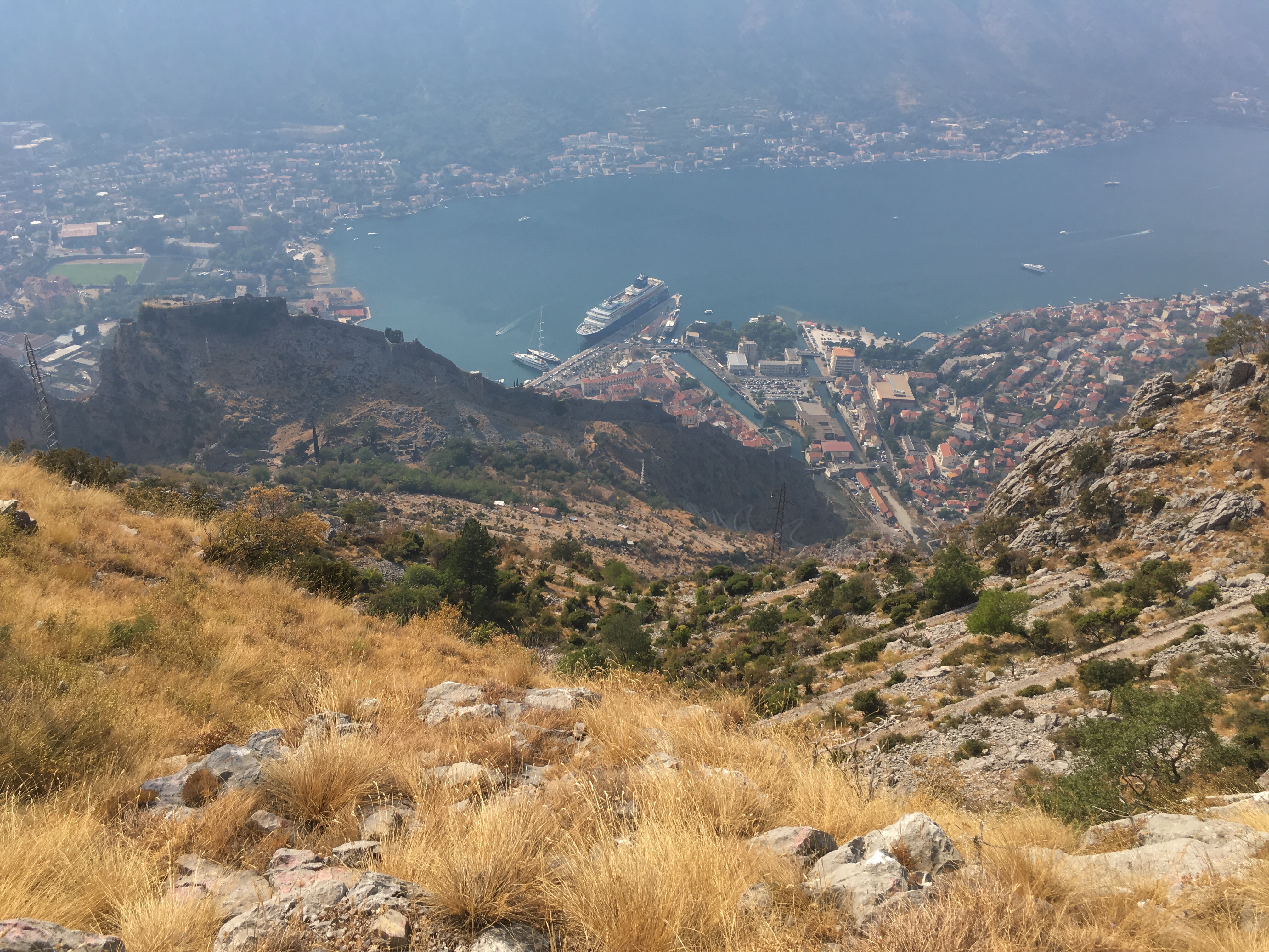 The “Ladder of Kotor” is a series of 72 switchbacks, rising 1,000m (yes 1km), taking 8 hours (round trip) over 10km of brutal mountain trails.
